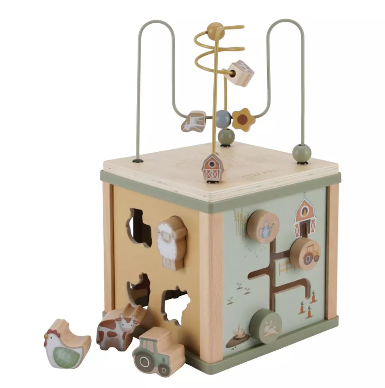 Educatieve en duurzame activiteitenkubus van FSC hout van het kwaliteitsmerk Little Farm.